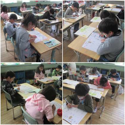 今日の書写のめあては、「角のつき方と交わり方に気をつけて書こう」です。