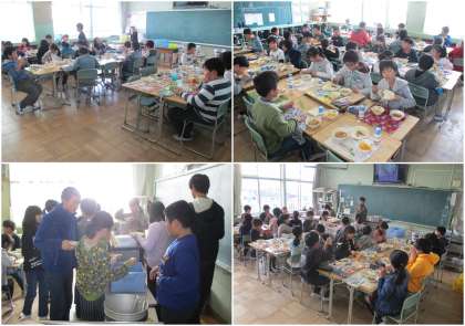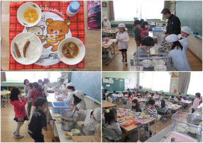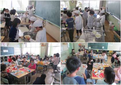 今日の給食の献立は、愛知県が全国に誇る「きしめん」、それを栄養たっぷり具だくさんの「五目きしめん」でいただきます。そして、はじめて聞いた人も多い蒲郡の特産品「めひかりのフライ」<めひかりは魚です>、みんな大好き「フルーツゼリーあえ」、「牛乳」でした。給食の「きしめん」のクオリティーは非常に高く、うどん屋さんの手打ちの負けないコシがあります。「めひかりのフライ」もはじめて食べましたが、とてもおいしく子どもたちにも人気でした。
