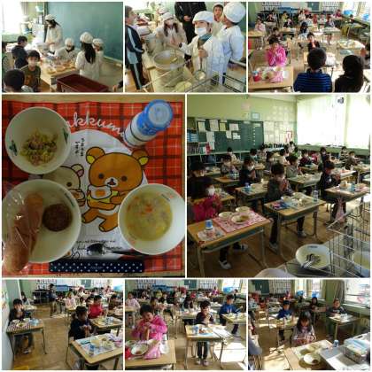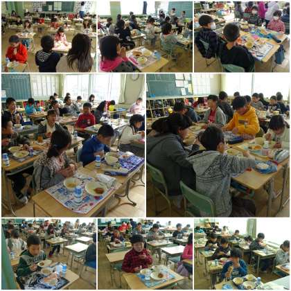 今日は洋食やハンバーグ好きにはたまらない献立でした。学級閉鎖が開けたばかりの学級は、久しぶりの給食をとても楽しみにしていたようで、写真を撮りに教室に入ると、まだ食べていないのに、「おいしそーでーす!」と叫んでいる人もいました。