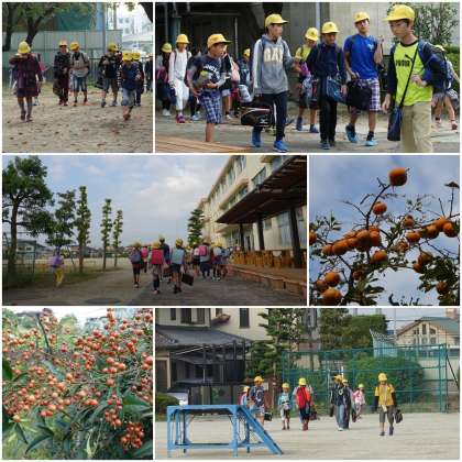 今日も青空の広がるさわやかな朝となった。からだももうすっかり今年の夏の暑さを忘れてしまっているようだ。登校してくる子どもたちの服装も、秋らしい装いに替わってきた。学校の周りに目を移すと、柿の実、南天の実、ミカンの実など、多くの植物が実をつけている。子どもたちにとっても、大きく成長するための実りの秋であってほしい。