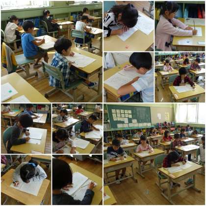 1年書写競技会 公開日 2018/10/19 更新日 2018/10/19 1年生の部屋 書写競技会がはじまりました・・・。 1時間目は練習・・・。 2時間目が清書です・・・。 清書は2枚だけです。 いいね(0)