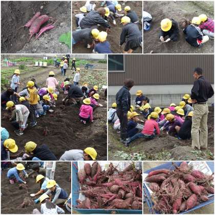 今日子どもたちが巨大なさつまいもを持ち帰ります。焼きいも、ふかしいも、てんぷら、スイートポテト、みそ汁、シチューどんな調理法でもおいしく食べることができると思います。ちなみに品種はちょっと高級な紅はるかです。お子さんと芋掘りの話をしながら調理し、家族全員で食べてください。