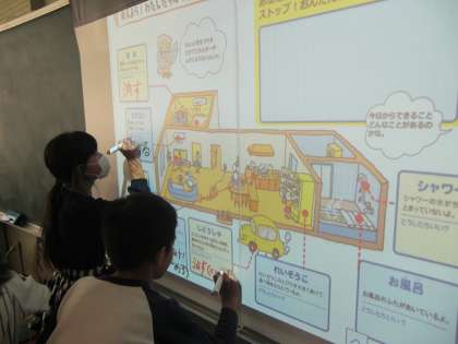 4年生は総合的な学習で環境問題について考えています。そのため、愛知県主催のストップ温暖化教室を開いていただきました。講師の先生から地球の現状と温暖化を防ぐために今の自分には何ができるのか教えていただきました。食べ残しが温暖化につながっていることを聴きびっくり!!「バイキングとかで結構取りすぎて残してしまうんだよね・・・温暖化につながっているとは思ってもいなかったよ。」とぽそり。自分ができることから始めてみましょう♪