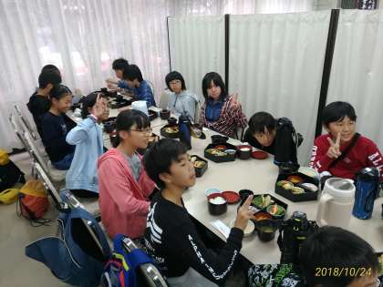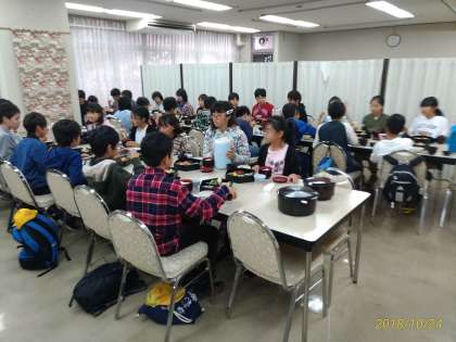 和風弁当をほぼ食べ終わりました。お腹もふくれて、元気一杯になったようです。この後は、西陣織り体験です。