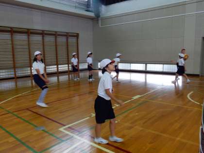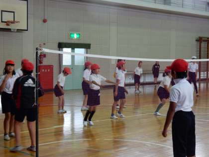 先週から始まったソフトバレーボール。今回からネットをはってゲーム開始です。グループで声をかけあいながらボールをパスでつないでいく子ども達。「ボールが後ろにいったよ。もっとさがって」「ボールが上にあがったよ〜」といった声が各チームからあがっていました。アンダーパスやオーバーパスをうまくつかってボールゲームを楽しんでいきましょう♪