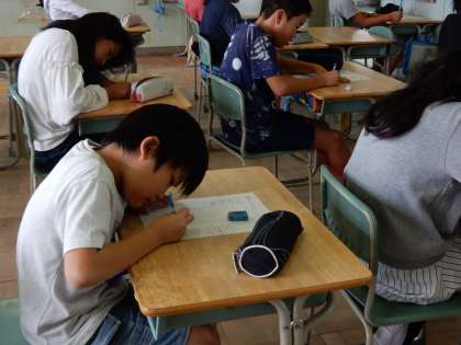 社会科の学習で、県名と県の位置のテストが始まりました。新潟県も栃木県も漢字で書きます。「ここは、岩手と秋田、どっちだっだかな?」「福井と福島があるけど、どっちかな?」頭をひねりながらテストに取り組んでいました。小テストを繰り返し定着を図っていきたいと思います。