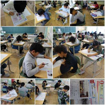 6年2組は国語と社会のテストを行っていました。
