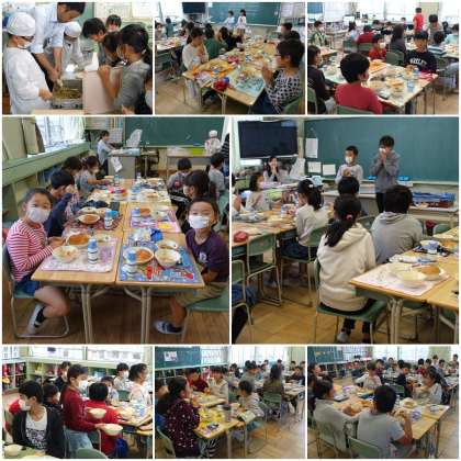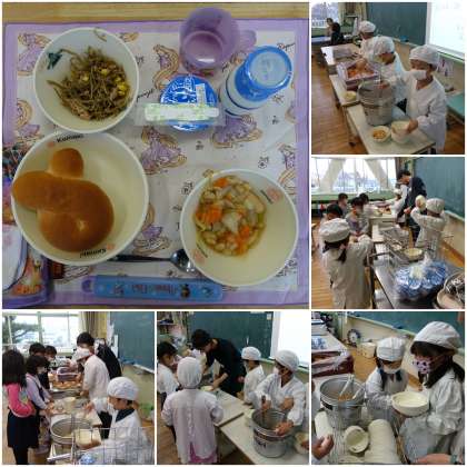 時々出るパンに子どもたちは大喜び、たまにしか出ることのない「ヨーグルト」にまたまた大喜び・・・。今日も大満足の給食でした。