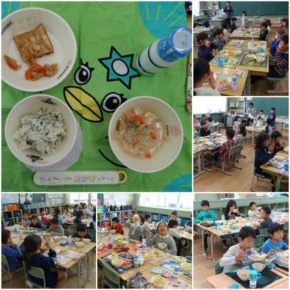 今日の給食の献立は、嫌いな人がほぼ0だと思われる超人気の「わかめごはん」、豆乳を使っていることをほとんど感じさせない給食特性「豆乳なべ」、地産地消シリーズのトップバッター「愛知のすずき入りはんぺん」、多分家で作ることはあまりないと思われる「きんぴられんこん」、そして給食の中で1番好きという人もクラスで1人2人いる毎日出る「牛乳」でした。
