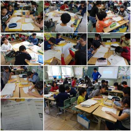 今日の授業の中心は新聞づくりでした。見学レポートや撮影してきた写真などを効果的に使い、読む人にわかりやすい新聞の完成をめざします。大人を唸らせるような、発見がたくさんある新聞を期待しています。お父さん・お母さんも完成を楽しみにしていてください。