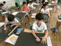 今週は1組さんが「かさこじぞう」のお話の絵に挑戦です。