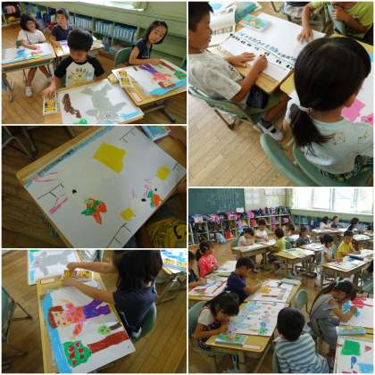 「やぶいた かたちから うまれたよ」が1組さんも完成するようです。