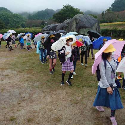 お昼を食べ、石舞台古墳の見学です。雨は少し小降り?になった?かな?
