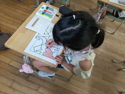 その形をじっと見ながらどんなものがかくれているか考えて、色をぬりました。