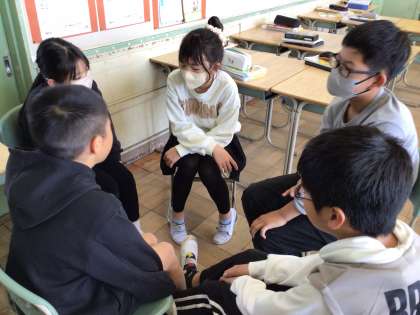 国語の授業では、一人一人が考えた文章をつないで、お話を作りました。
