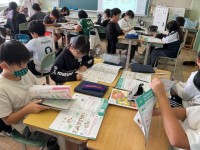 班ごとにしおりを見て、行程を確認しました。自分の係の仕事をしっかりと果たすために、一生懸命確認していました。