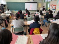 狂言「柿山伏」を楽しもうという授業です。柿主と山伏役に分かれて、演技をします。特...