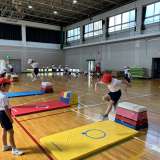 「跳び箱に慣れよう!!」 跳び箱に片足でふみ切って飛び乗り、ジャンプして飛び降...