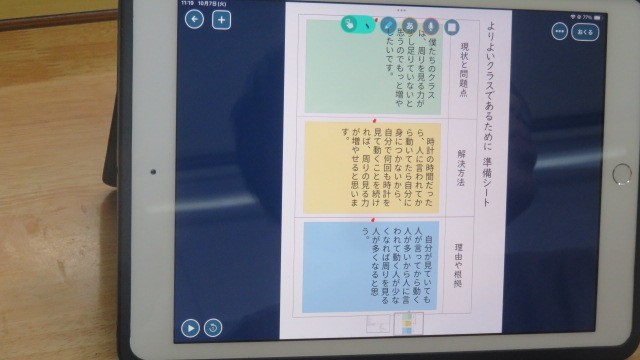 国語は、話し合い場面で、互いの立場や意図を明確にしながら、考えを広げたりまとめたりする学習をしています。今日は、「よりよいクラスにするために」というテーマで、自分たちの学級の改善していきたい部分について、グループで話し合いました。