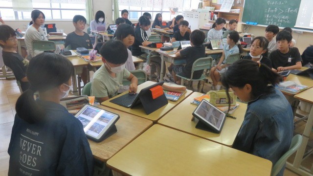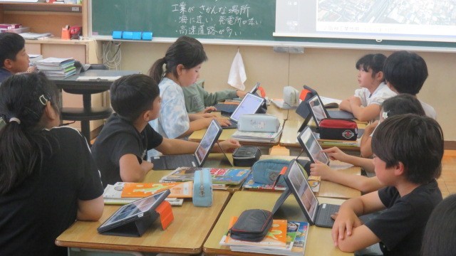 社会科は、工業製品は、どんなところで作られているのかを資料から読み取り、工業が盛んな地域の特徴を考えました。