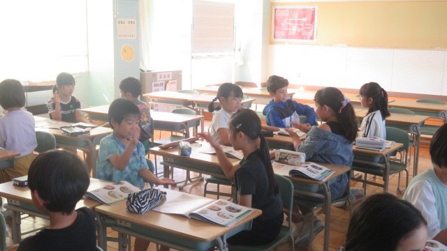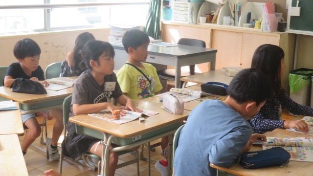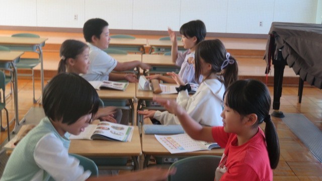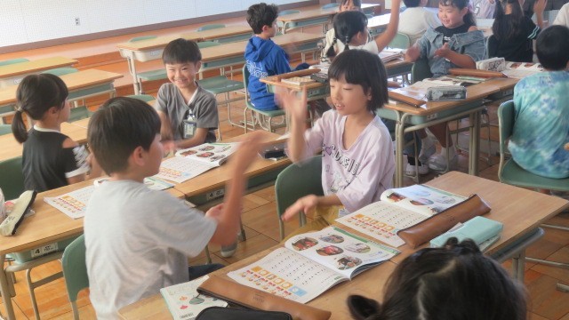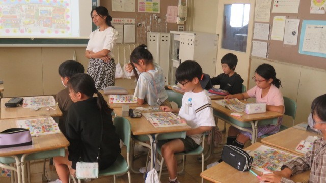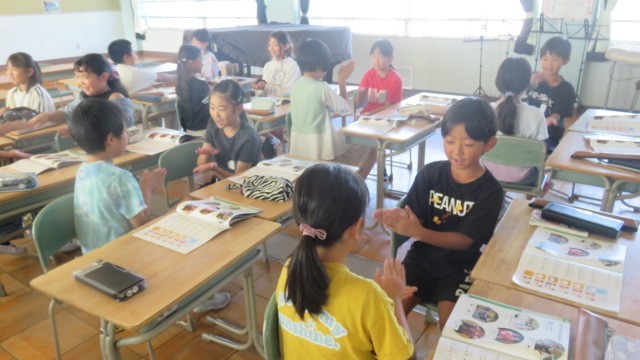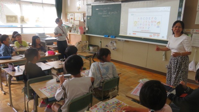 外国語活動では、先生が発音したアルファベットで始まる単語をみつけたり、「ABCの歌」を歌ったりしました。
