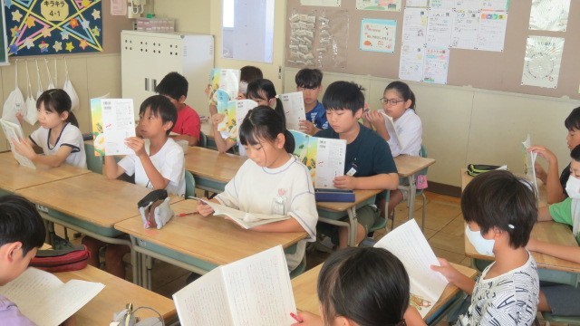 がまくんとかえるくんの物語を、今日も読み味わいました。音読と自分が思ったこと、感じ取ったことの共有を繰り返します。