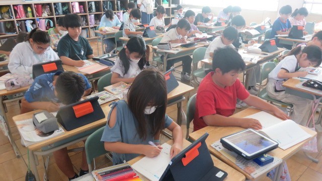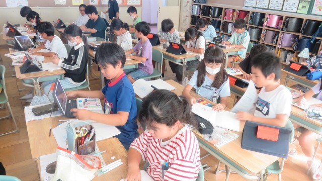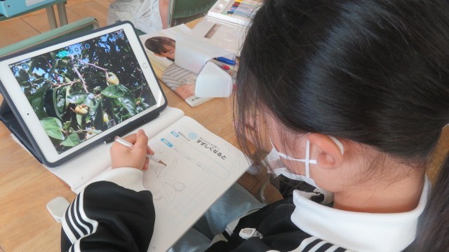 理科は、前の時間に撮影した、涼しくなるころの植物の様子を、写真を見ながら理科ノートに記録しました。
