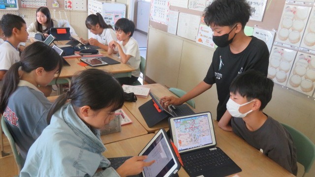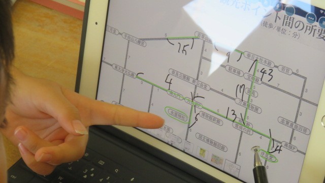 修学旅行の奈良公園班別行動の計画を立てました。移動距離と移動時間、見学時間を計算しながら、決められた時間内に、どういった経路でどこを回るかを考えました。修学旅行へのワクワクが、また一段高まりました。