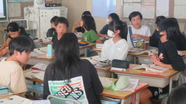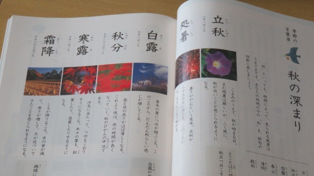 国語は、二十四節季の「秋」を示す言葉の意味を、解説を読んで確かめ、秋の俳句を読み味わいました。