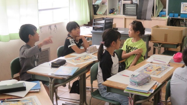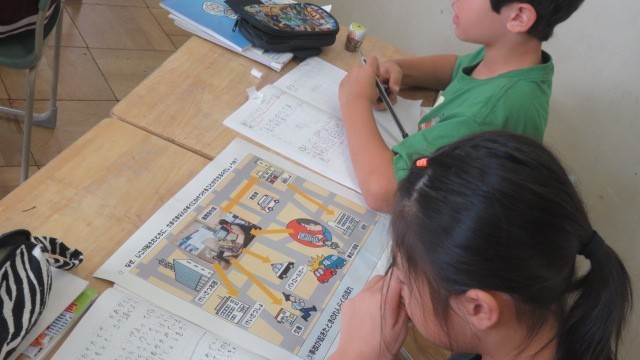 社会科は、事故が起きた時、誰がどんな役割を果たしているかをイラストから読み取りました。