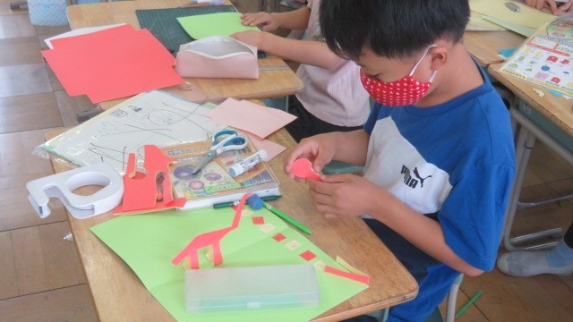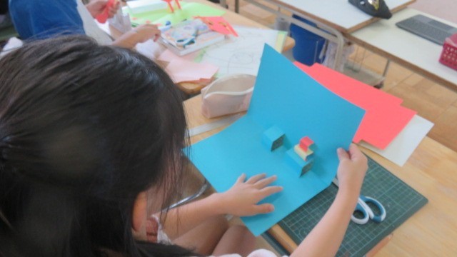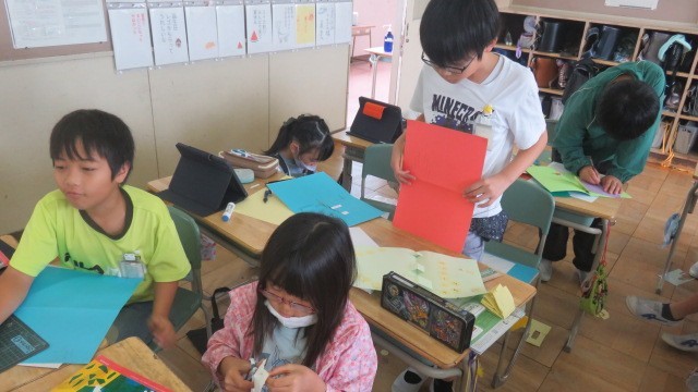 図工は、図工競技会本番に向けて、飛び出す仕組みまでを作りました。試作を生かし、素敵なカードに仕上げてくださいね。