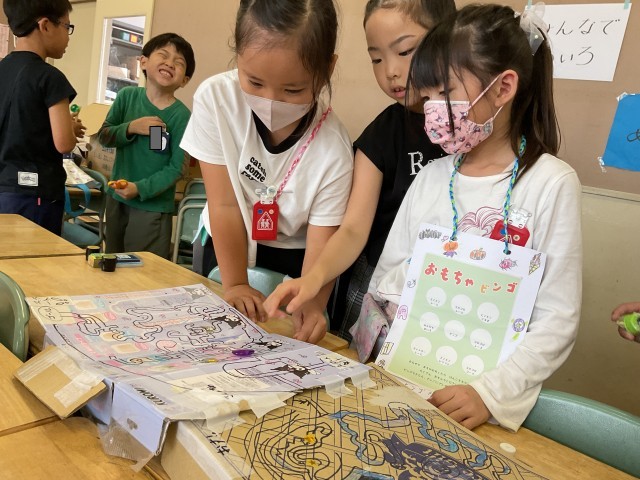 生活科で作ったおもちゃでゲームを考え、1年生の子を招待して遊んでもらいました。1年生が楽しめるように積極的に声をかけていました。お兄さんお姉さんとして、1年生に接する姿が見られました。