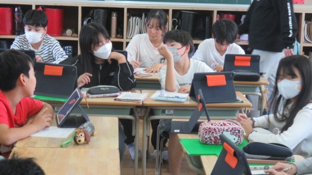 国語は、「似た意味の漢字でできている」「二つの漢字が対になっている」など、熟語のでき方の特徴について考えました。