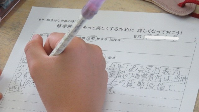 修学旅行をより楽しくするために、見学地の調べ学習をしました。