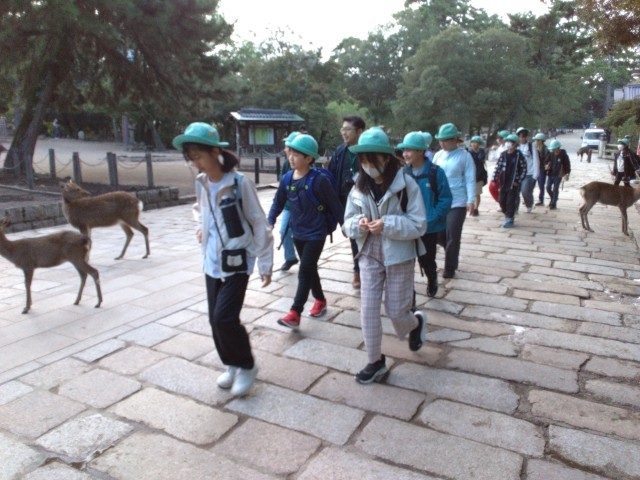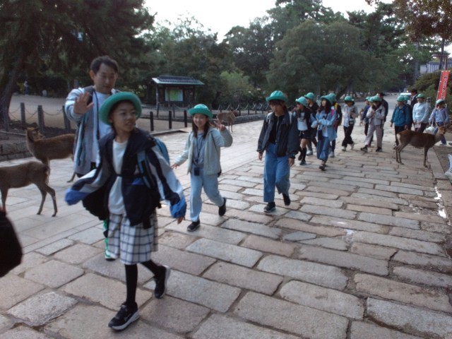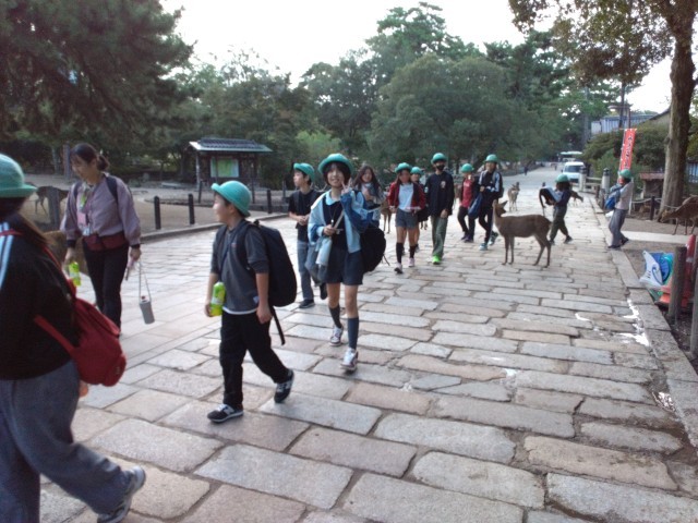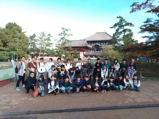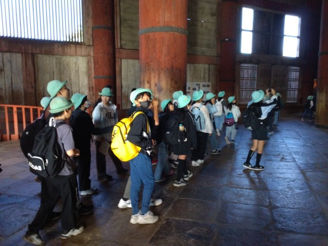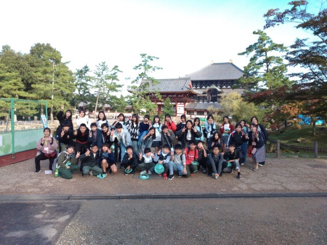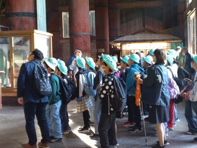 鏡池の前で学級写真を撮って大仏殿へ 大仏の大きさにビックリ!どうやって作ったんだろう?