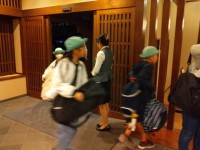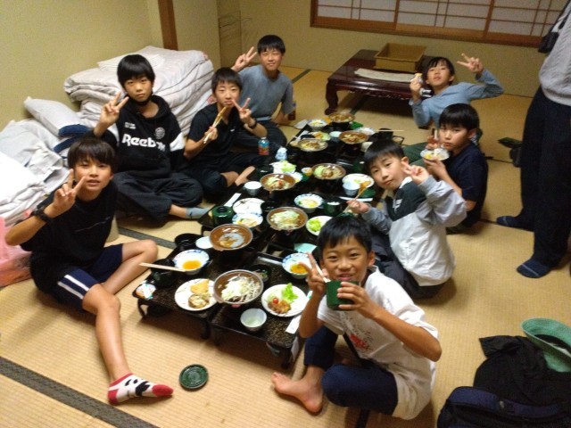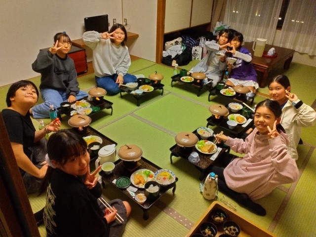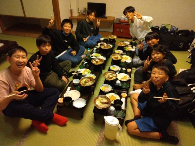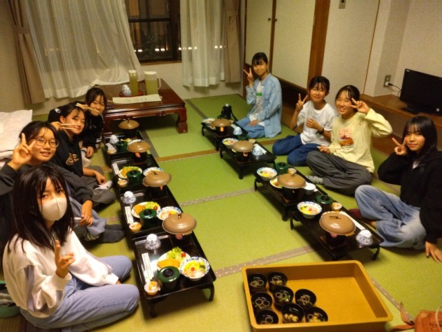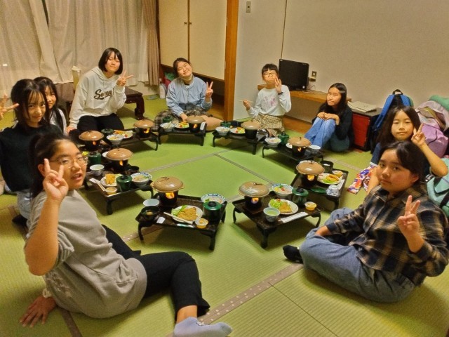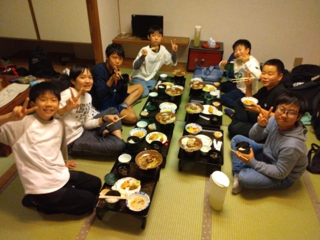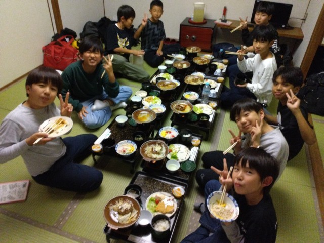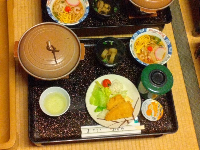 部屋食です。声をそろえて「いただきまーす」 ふたの中は、ハンバーグ!