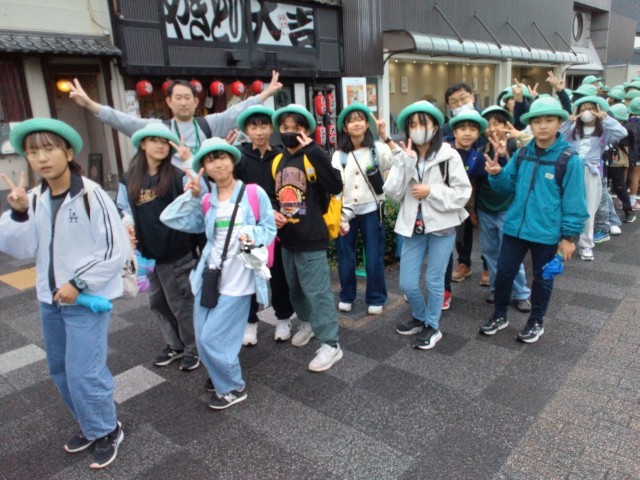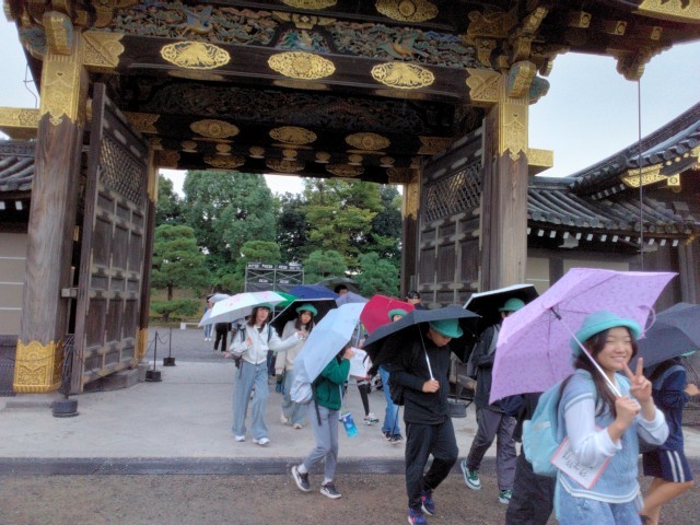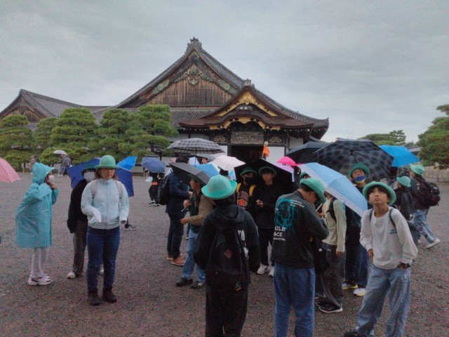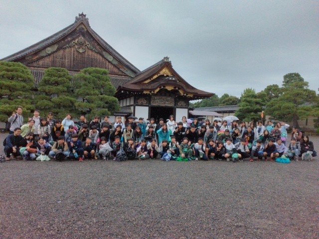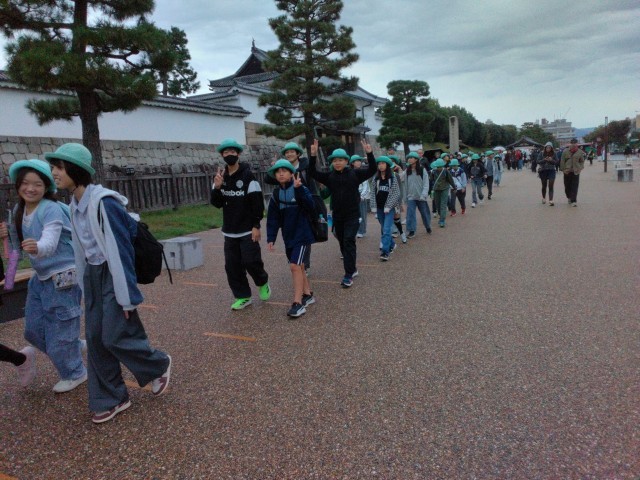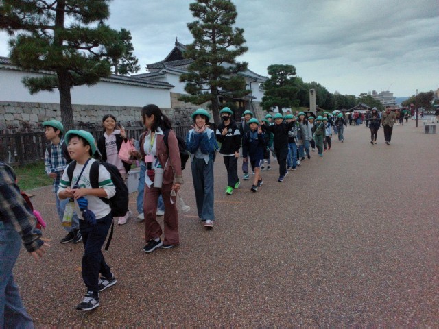 学年写真撮影後、城内見学へ。バスガイドさんの話もしっかり聴きます。