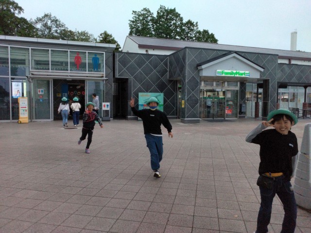外の空気を吸って、しばし休憩。寒くてすぐバスの中に避難しました!