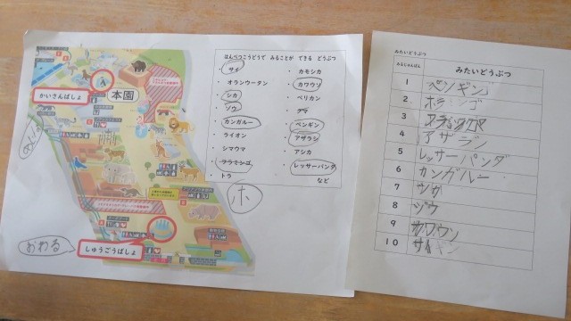 来週の校外学習に向けて、東山動物園での見学計画をグループの友達と立てました。どの子も、楽しそうに相談していました。計画通り回れると良いですね。