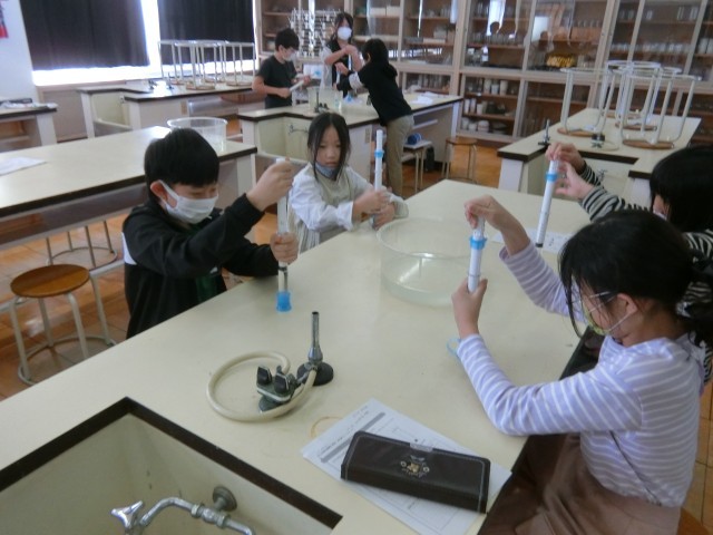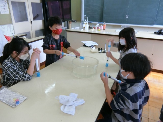 閉じこめた空気や水をおして、体積が変わるか実験を通して調べました。比べると違いが分かりやすかったようです。