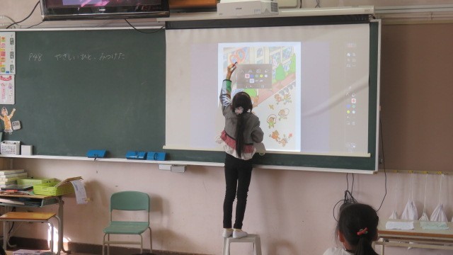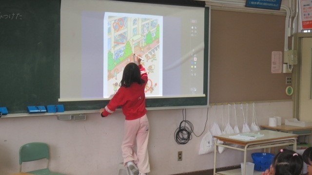 道徳の時間は、学校生活の絵から、友達に優しいことをしている人をみつける活動を通して、優しい気持ちとはどんな気持ちなのかを考えました。