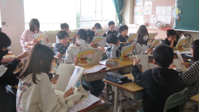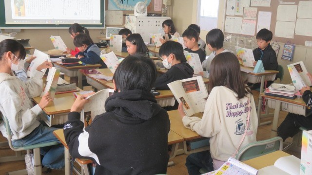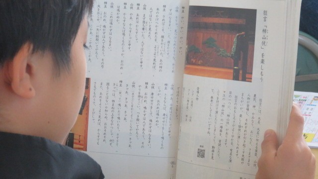 国語は、古典芸能の狂言の世界を、「柿山伏」の動画を見て楽しみました。
