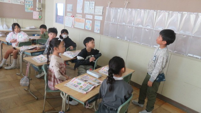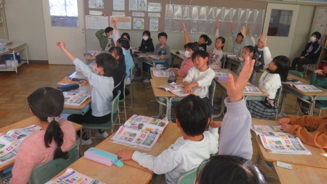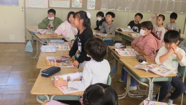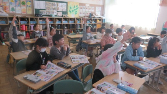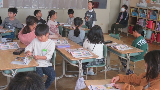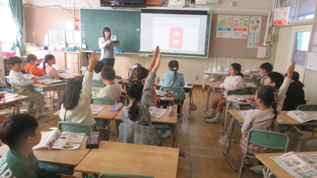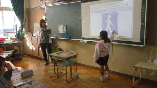 生活科の時間は、生活や町の中にある「みんなの安全を守る工夫」について、イラストやマークの写真を見て知っていることを伝え合いました。