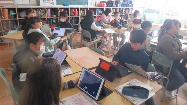 社会では、運輸や貿易について学習しています。外国と、どんな物を買ったり売ったりしているのか、物をどう運んでいるのかなどを、資料を見ながら考えました。