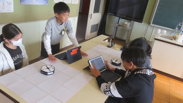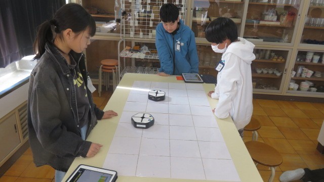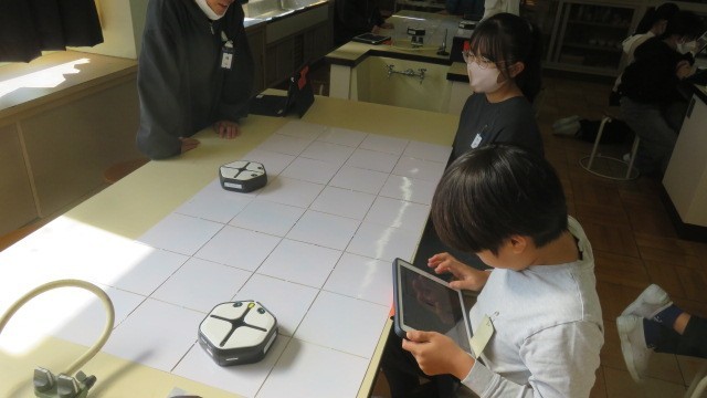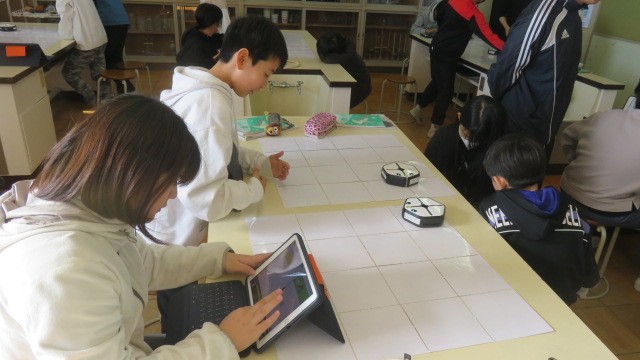 理科の時間に、R00t-1を使って、プログラミング学習をしました。Root-1の動きを各自でプログラムし、実際に動かしました。思った通り動いたかな?