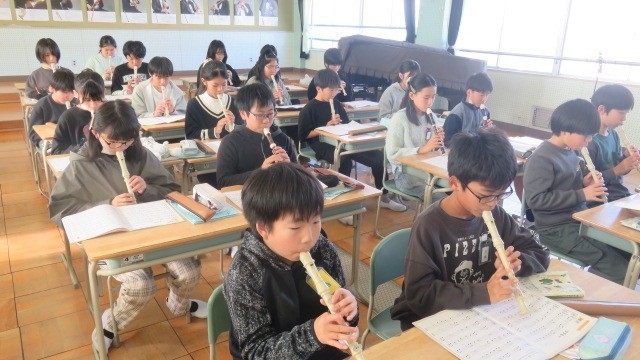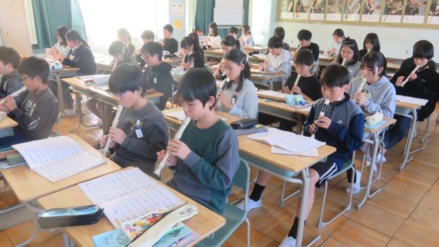 音楽では、リコーダーの練習をしました。歌声がとても美しい学年ですが、リコーダーも澄んだ音色でとても素敵です。