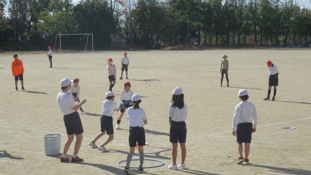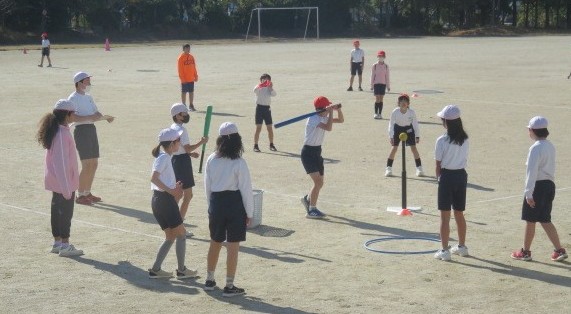 体育は、Tボールのゲームを楽しみました。野球の大まかなルールが分かってきたので、ゲームがスムーズに進みます。