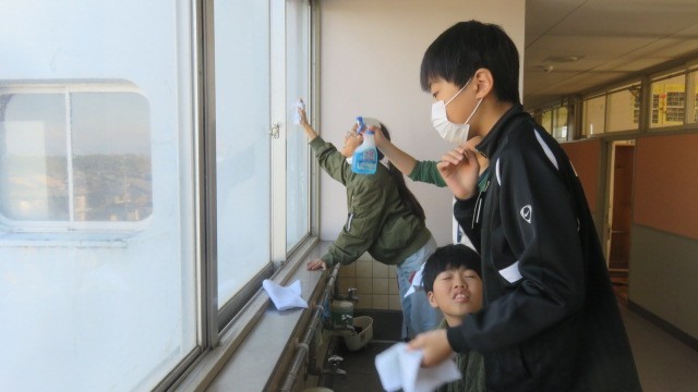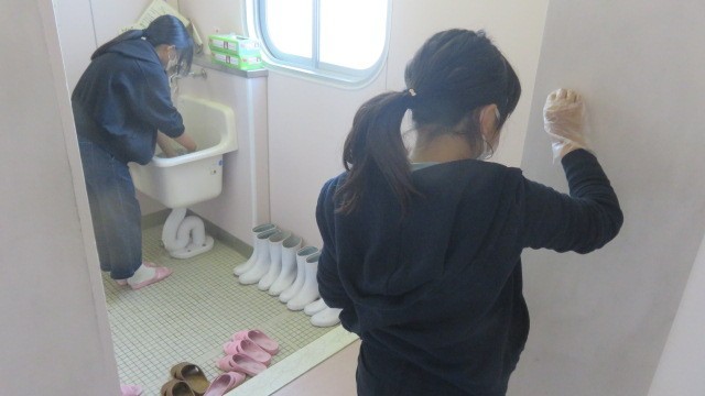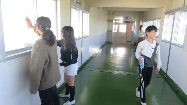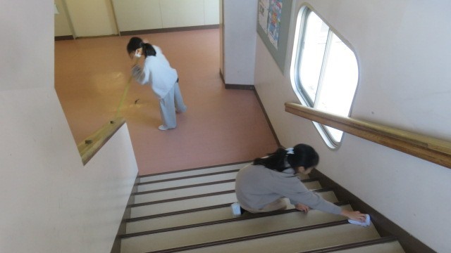 家庭科は、校内の汚れている場所を調べ、その汚れ方や場所に合った掃除の仕方を考えて、掃除実習を行いました。おうちで実践できることが何よりも大切です!