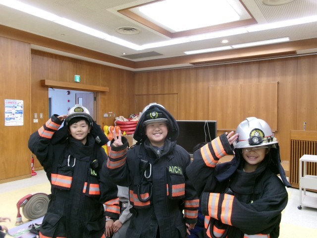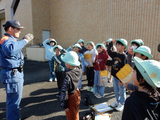 3年生が社会科の学習で消防署を見学し、放水訓練や防火衣の着用など貴重な体験をさせてもらいました。体験後には、「将来は消防士になりたい」という感想をもつ児童が何人もいました。児童の心に残る素晴らしい体験をさせてもらいました。