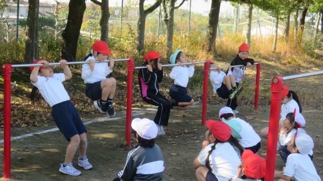 体育の時間に、鉄棒のいろいろな技に挑戦しました。自分の体重を腕で支えられるうちに、一つでも多くの技を身につけたいですね。
